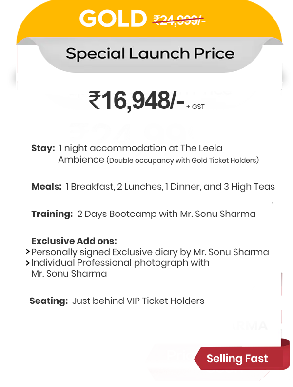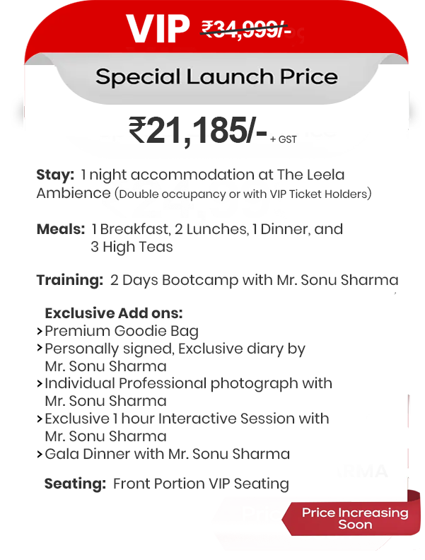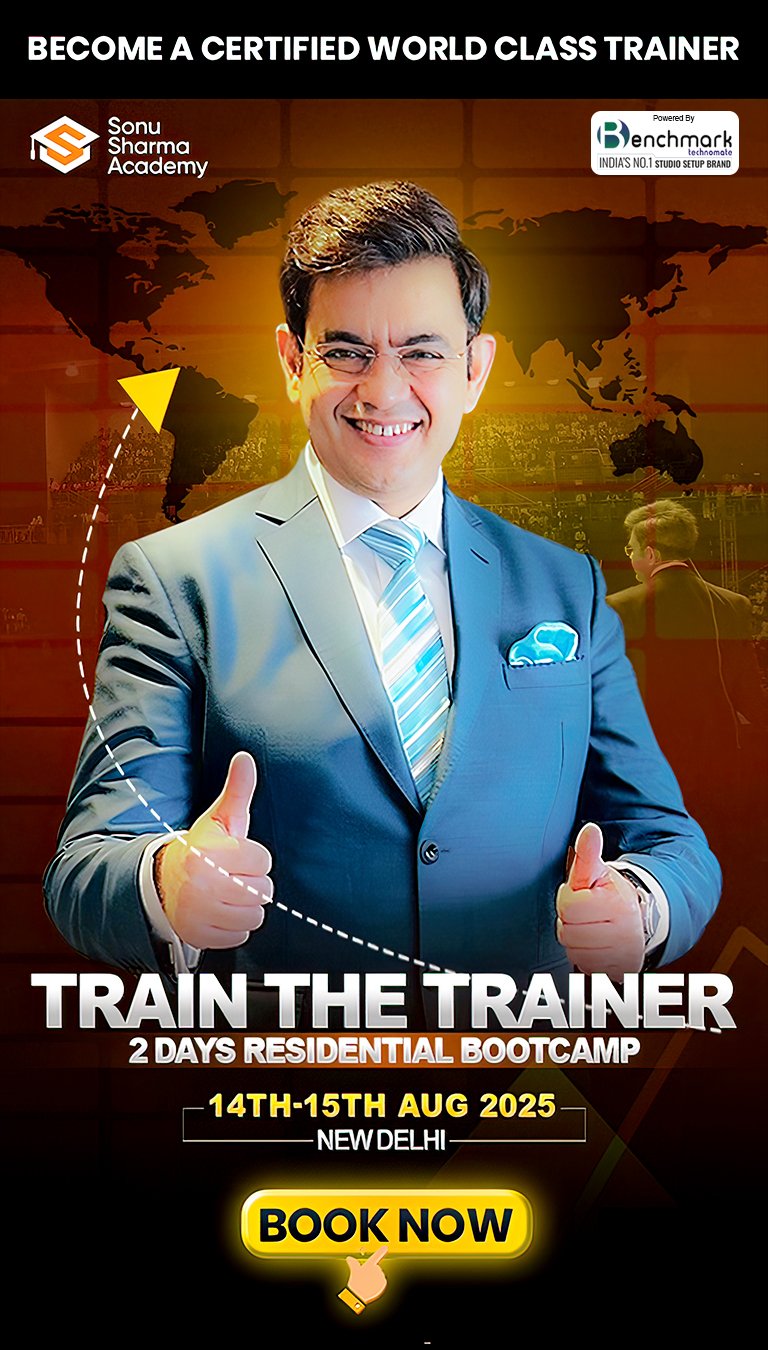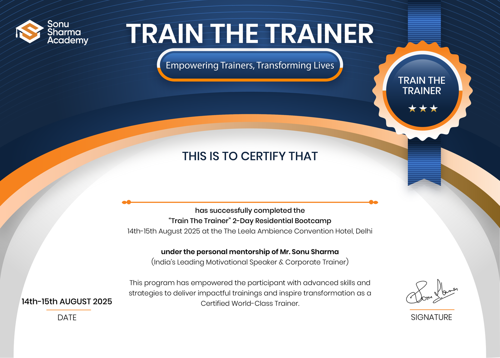 This exclusive residential training by Mr. Sonu Sharma is your gateway to becoming an official Certified Trainer of the Sonu Sharma Academy. Get ready to unleash the trainer inside you!